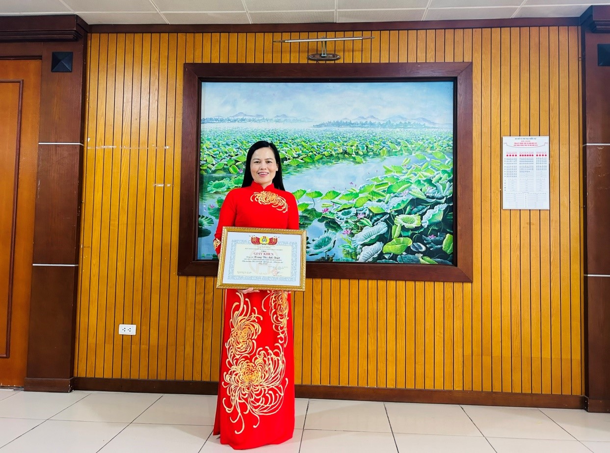 Đến trường, cô sống chan hòa, gần gũi với mọi người; cô luôn quan tâm, chia sẻ chuyện buồn vui của chị em giáo viên trong trường. Với những cố gắng, nỗ lực trong các hoạt động Công đoàn và sự nghiệp trồng người, năm 2012, cô được Tổng Liên đoàn Lao động Việt Nam tặng Kỉ niệm chương “ Vì sự nghiệp xây dựng tổ chức công đoàn”, Bộ trưởng Bộ GD&ĐT tặng Kỉ niệm chương Vì Sự nghiệp Giáo dục. Nhưng phần thưởng ý nghĩa nhất với cô vẫn chính là sự trưởng thành của mỗi thế hệ học sinh. Mỗi thành tích các em đạt được, mỗi thế hệ học sinh trưởng thành chính là những bó hoa tươi thắm nhất, là món quà ý nghĩa nhất, là niềm hạnh phúc không gì so sánh của cô - một nhà giáo hết lòng vì sự nghiệp trồng người của Trường Tiểu học Phúc Đồng.