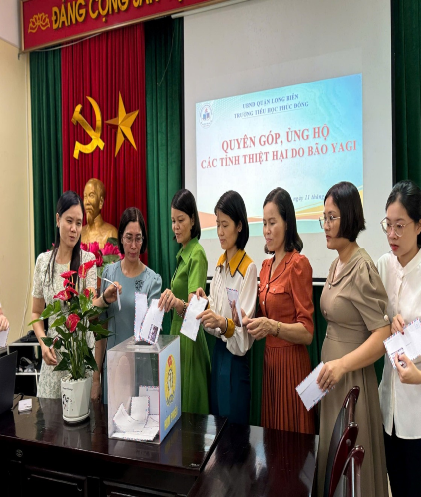 Ngày 13/9/2024 nhà trường đã nộp ủng hộ về MTTQ Quận Long Biên 94.678.888 đồng và Quận đoàn Long Biên 100 chiếc balo mới trị giá 8.000.000 đồng.