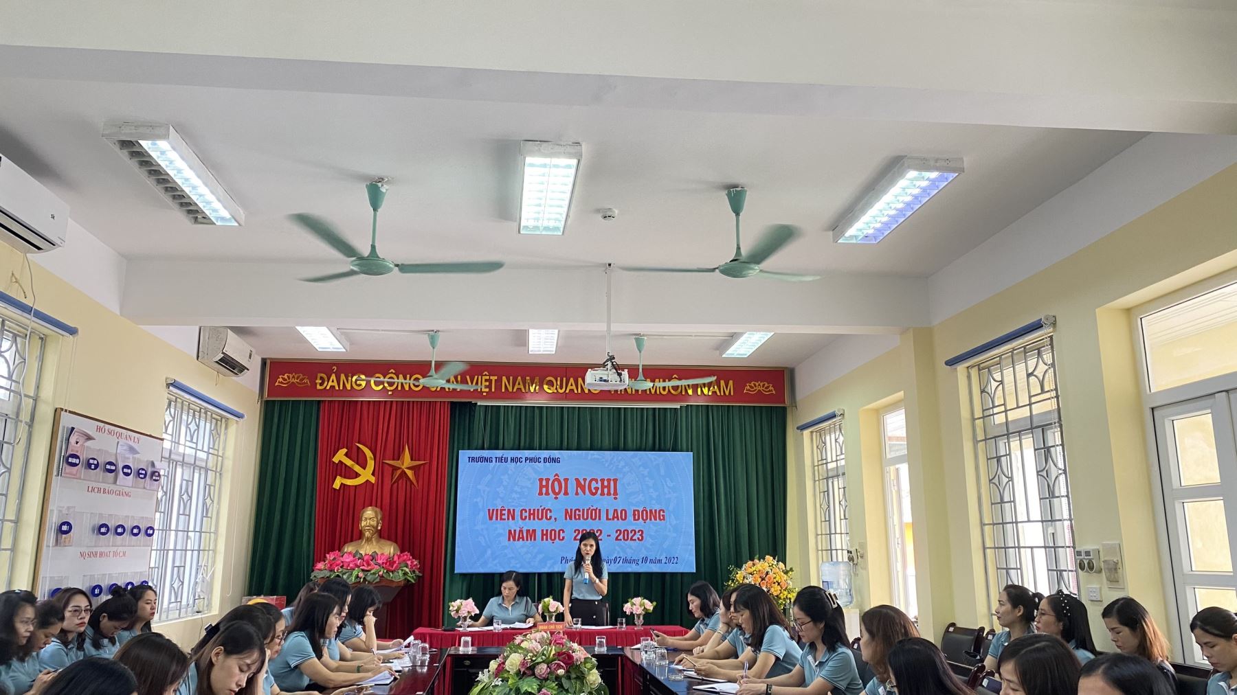 Thực hiện công văn hướng dẫn của Liên đoàn Lao động quận Long Biên về việc hướng dẫn tổ chức hội nghị viên chức, người lao động, ngày 07/10/2022, Trường tiểu học Phúc Đồng tổ chức Hội nghị viên chức, người lao động năm học 2022-2023.