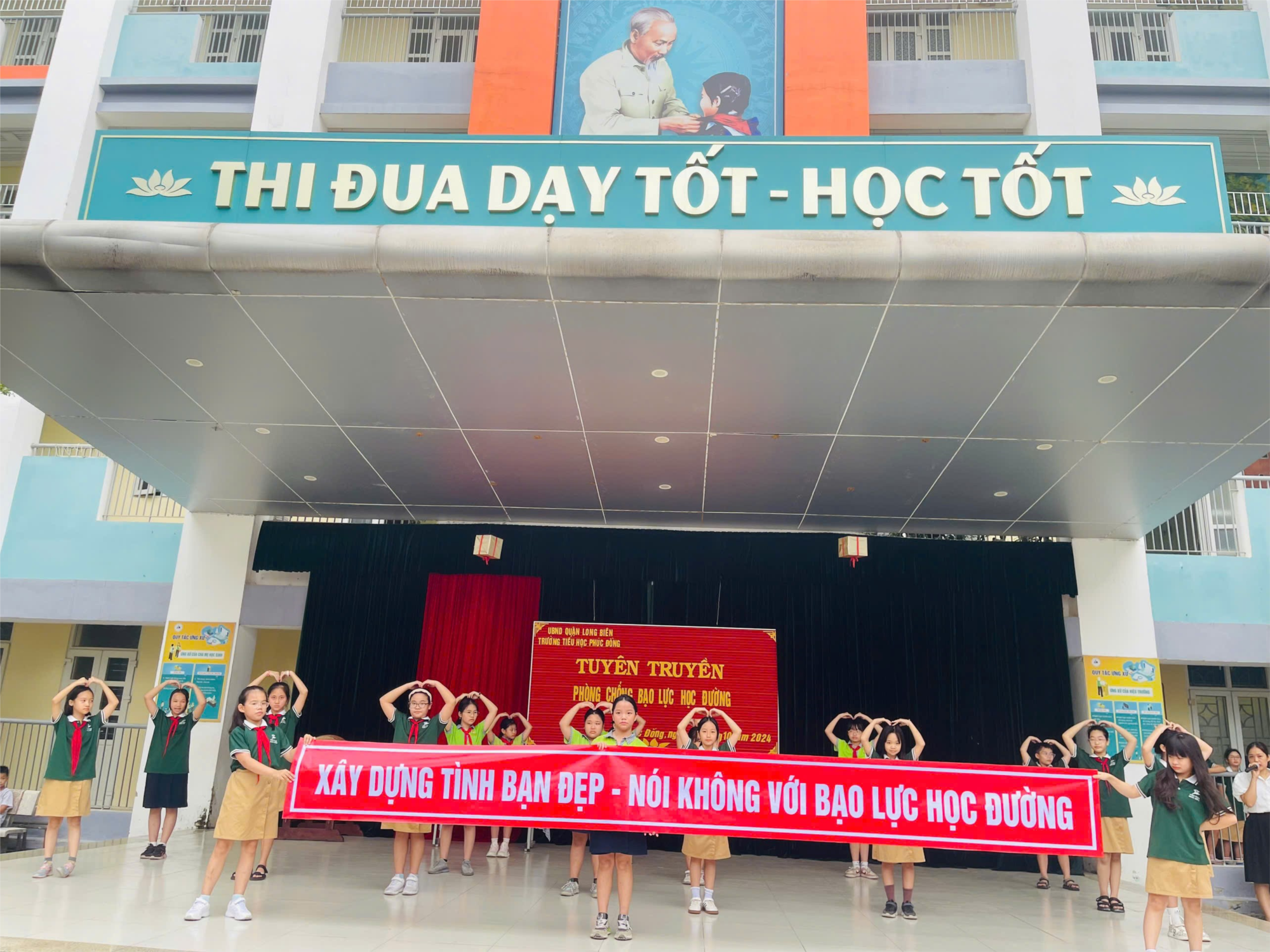 Hình ảnh: tuyên truyền phòng chống bạo lực học đường do lớp 5D thể hiện.