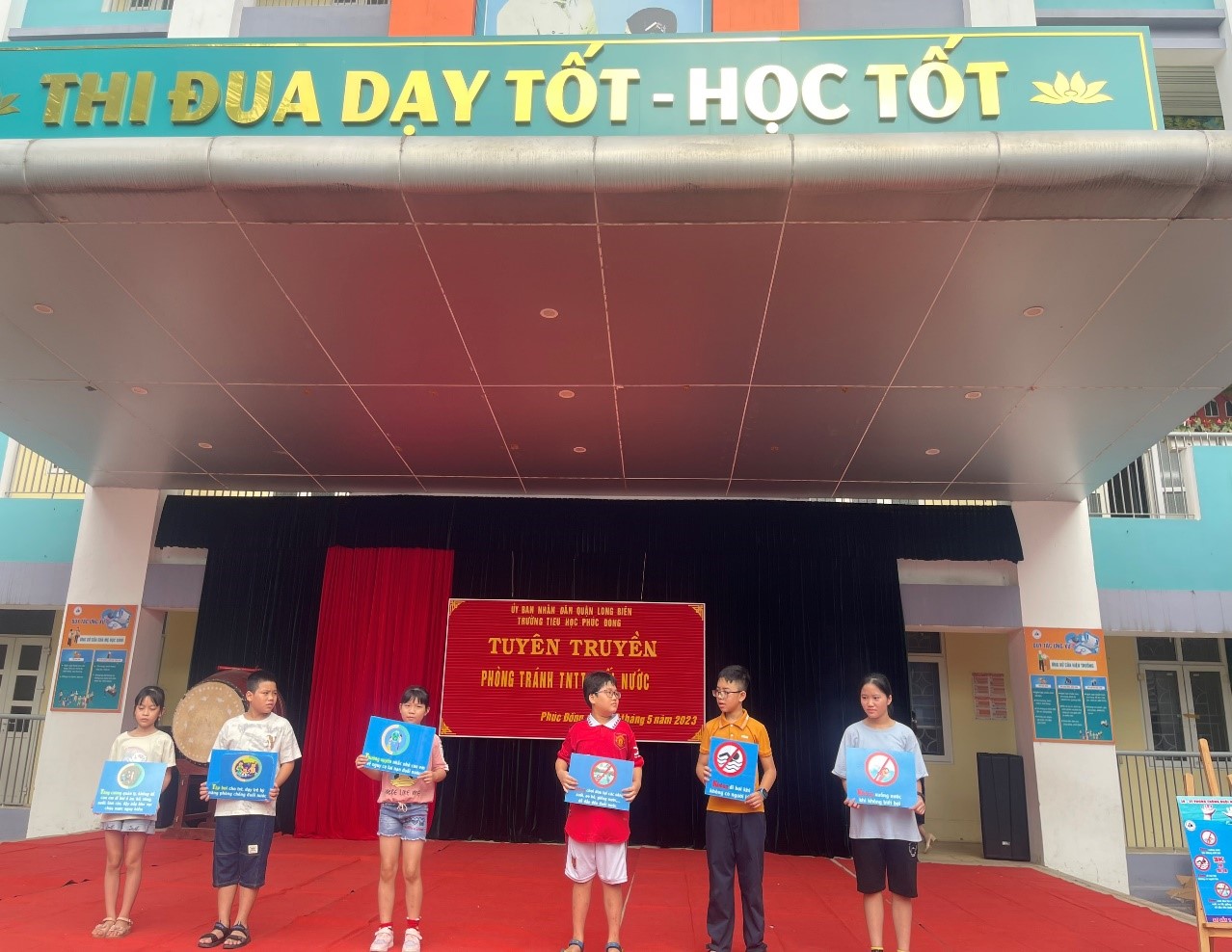 Hình ảnh: Đội TTMN lớp 5A tuyên truyền PTTNTT “Đuối nước”