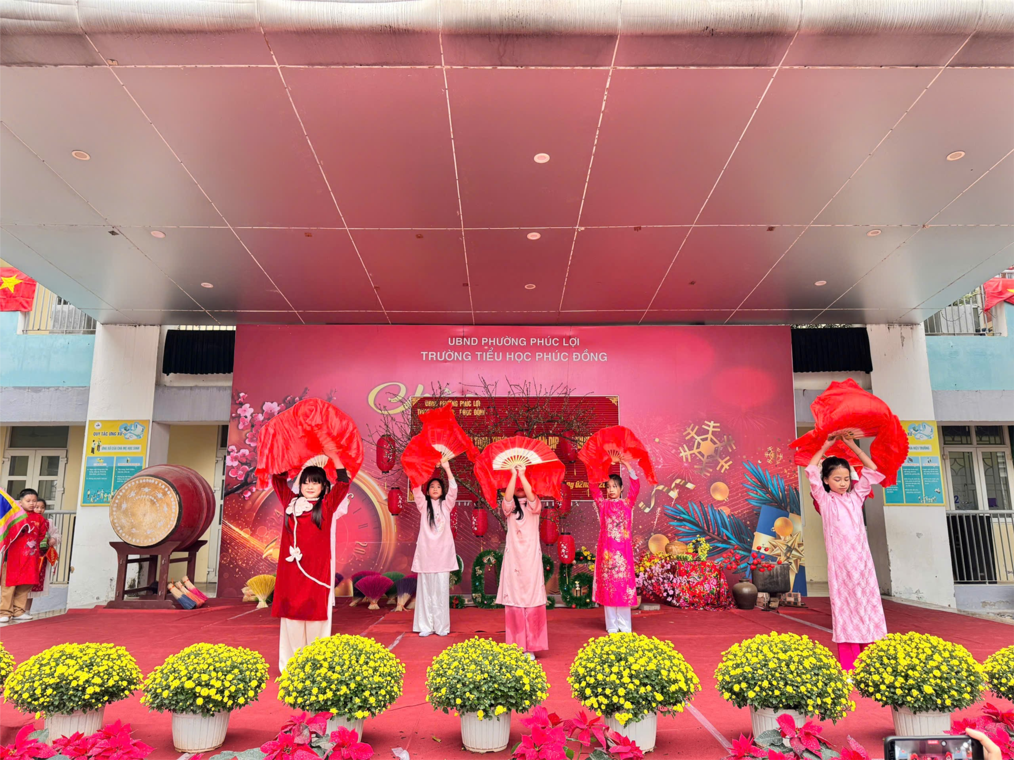 Hình ảnh: cô trò lớp 4G hát múa bài “Ngày xuân long phụng”