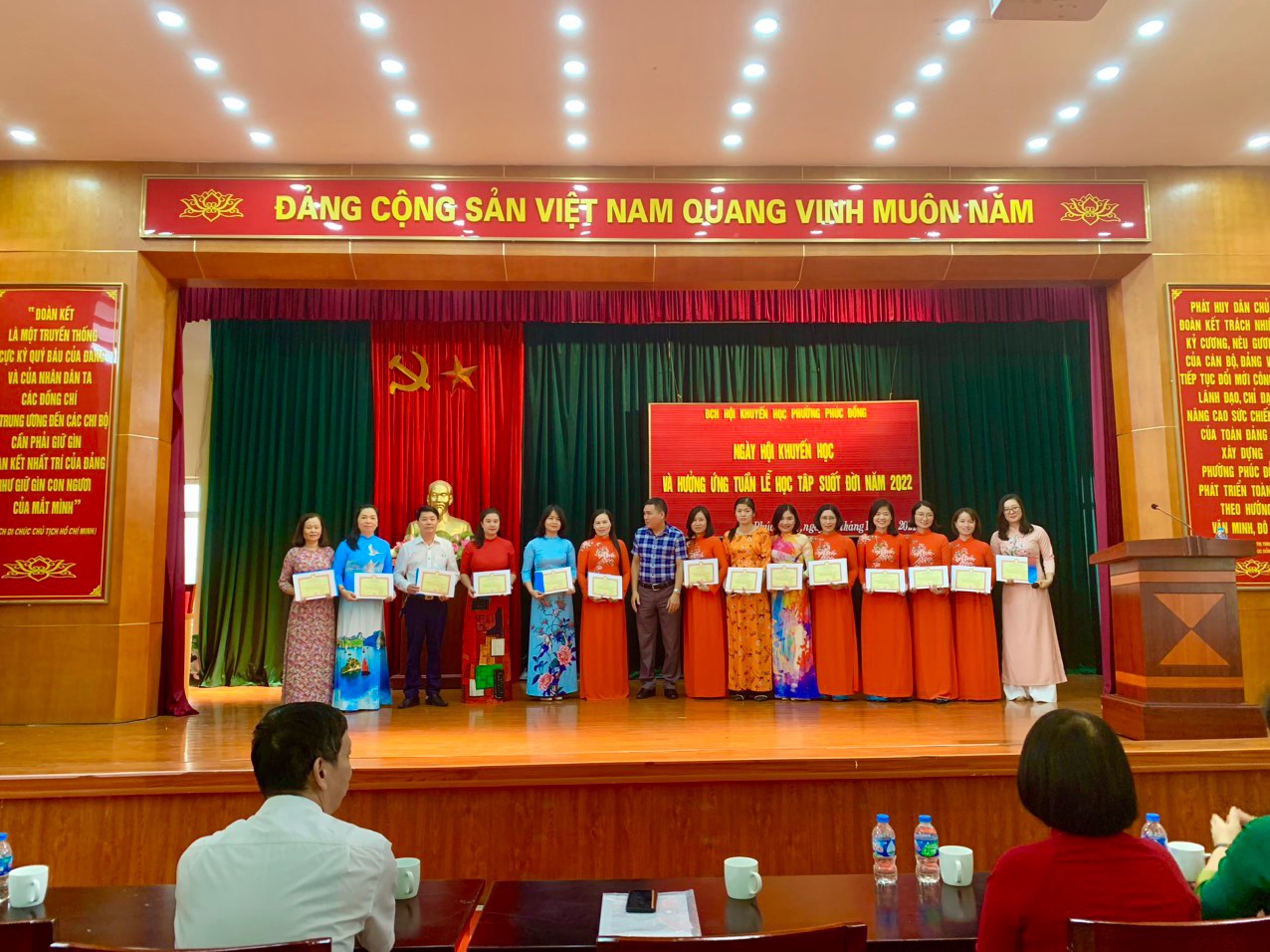 Thực hiện KH số 128 ngày 15/8/2022 của UBND phường Phúc Đồng về việc tổ chức "Tuần lễ hưởng ứng học tập suốt đời" và Ngày hội khuyến học trên địa bàn phường Phúc Đồng năm 2022, sáng ngày 02/10, CBGVNV cùng các em học sinh tiêu biểu, đội văn nghệ GV và HS của nhà trường đã có mặt tại Nhà văn hóa phường để tham dự ngày hội.