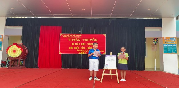 Tiếp theo chương trình là phần giới thiệu sách tháng 9 của cô Nguyễn Thị Diệu Hương - Nhân viên thư viện nhà trường. Qua lời giới thiệu của các bạn HS trong đội TTMN đã gửi tới thầy cô giáo và các bạn HS toàn trường cuốn sách “Truyện kể về ước mơ và khát vọng” mang đến cho chúng ta thông điệp: Có ước mơ, có khát vọng và có nỗ lực nhất định sẽ thành công. Mong rằng với thông điệp ấy ước mơ của các bạn sẽ được chấp cánh để bay cao, bay xa với những hoài bão của cuộc đời.