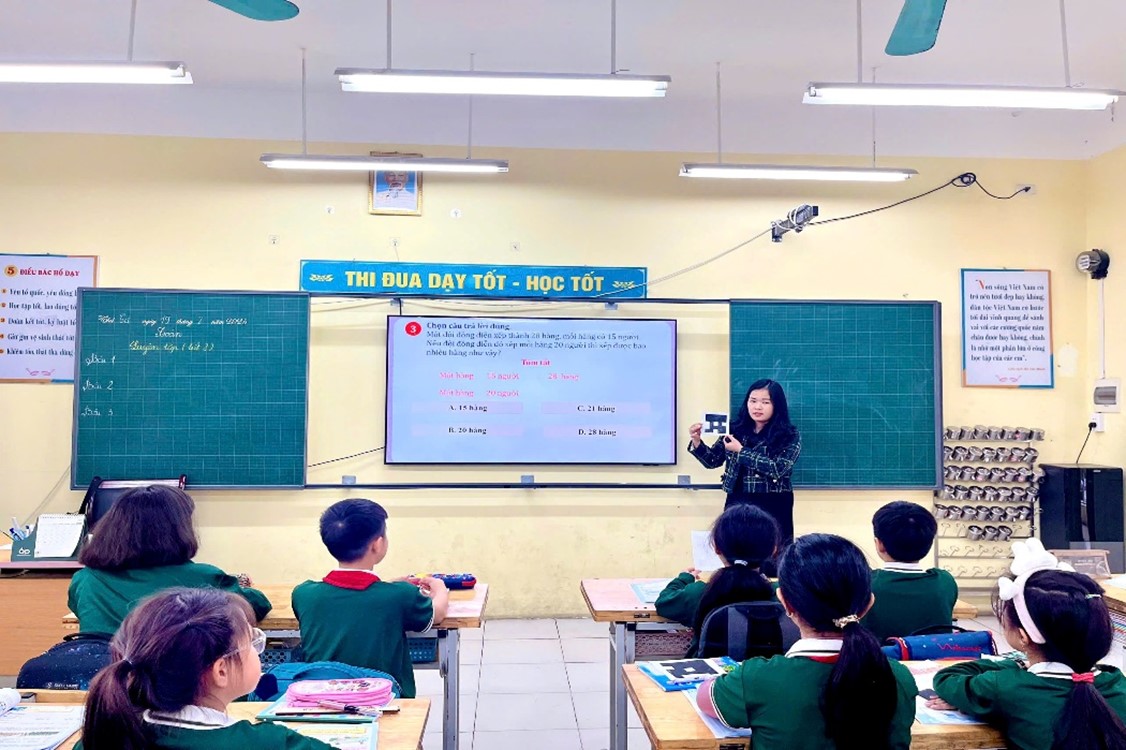 Với tiết học Toán, cô Nguyễn Thị Dương đã làm tăng sự hứng thú của học sinh bằng trò chơi “Ai nhanh ai đúng”. Trò chơi kết hợp công nghệ thông tin với những hiệu ứng bắt mắt, giúp học sinh vừa học vừa chơi, tiếp thu kiến thức một cách nhẹ nhàng. Không chỉ vậy, cô còn tích hợp kỹ năng công dân số, rèn luyện cho học sinh thao tác thành thạo với máy tính.