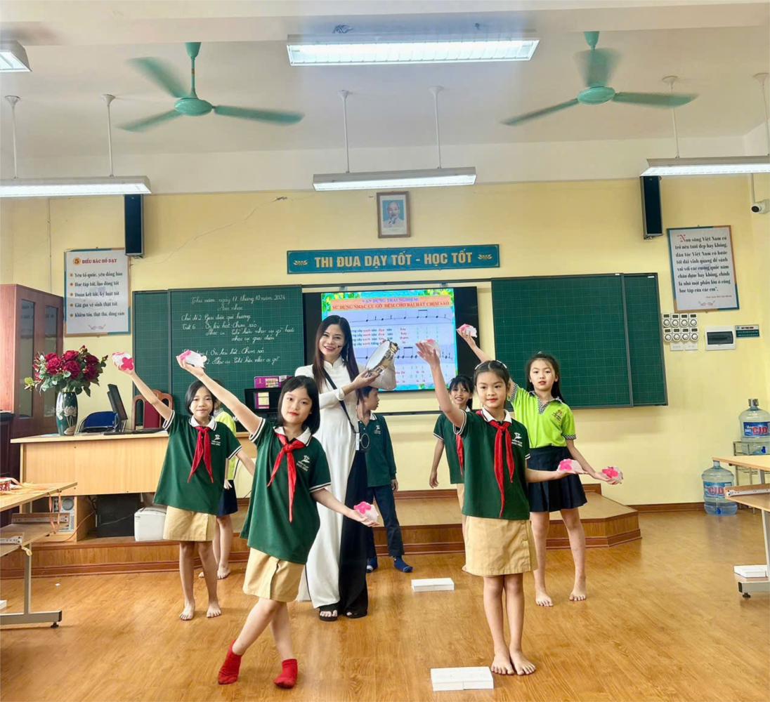 Với môn Âm nhạc, giáo viên đã áp dụng những phương pháp khởi động sáng tạo như: Hát theo giai điệu quen thuộc; Trò chơi âm nhạc. Học sinh không chỉ được hát, chơi nhạc cụ mà còn được sáng tác, tự do thể hiện bản thân qua những tiết mục biểu diễn, dàn dựng âm nhạc, hay phối khí nhạc cụ đơn giản. Điều này giúp các em trở thành trung tâm trong quá trình học tập, từ đó phát triển năng lực cá nhân.