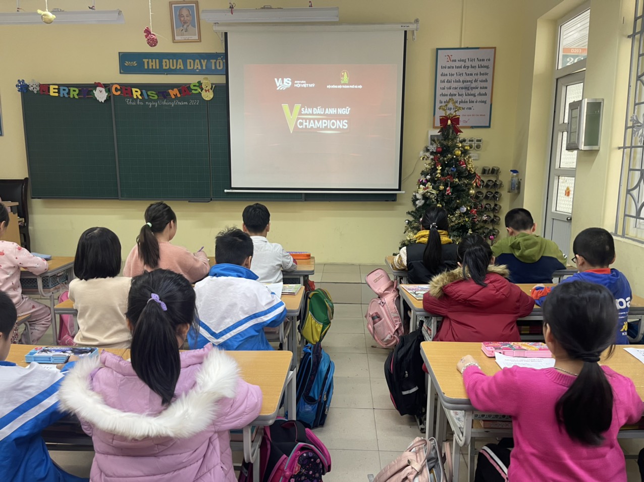 Thực hiện Chương trình công tác Đội và phong trào Thiếu nhi do Hội đồng Đội quận Long Biên phát động năm học 2022-2023, chiều ngày 12/12/2022, trường Tiểu học Phúc Đồng phối hợp với Trung tâm VUS - Anh văn Hội Việt Mỹ tổ chức thi vòng loại cuộc thi "V- Champions - Sàn đấu Anh ngữ 2022” cho 100% thiếu niên, nhi đồng trong toàn Liên đội.