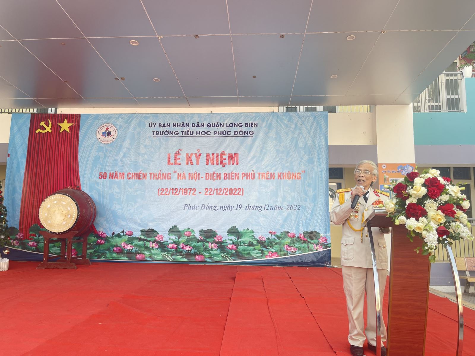 “Hà Nội - Điện Biên Phủ trên không”, đúng 14h30’ ngày 20/12/2022, trường Tiểu học Phúc Đồng long trọng tổ chức Lễ kỷ niệm 50 năm chiến thắng “Hà Nội - Điện Biên Phủ trên không”. Trong lễ kỷ niệm, nhà trường đã mời bác Đinh Khánh - Hội CCB quận Long Biên là báo cáo viên cùng đoàn nghệ thuật Hương Xưa tổ chức hoạt động giáo dục truyền thống lịch sử vô cùng ý nghĩa.