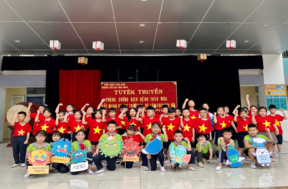 Để giúp các thầy cô và các em học sinh có thể nhận biết các bệnh theo mùa và cách phòng tránh, hôm nay chi đội 3G đã mang đến cho chúng một tiểu phẩm rất bổ ích có tên: “Tuyên tuyền phòng chống dịch bệnh theo mùa”. Với sự tham gia của các diễn viên nhí hóa thân vào nhân vật cùng đạo cụ là miếng bìa tạo hình của các loại bệnh, các loại virus vô cùng đáng sợ, các diễn viên nhí đã giúp các bạn nhỏ hình dung được dịch bệnh nguy hiểm như thế nào.