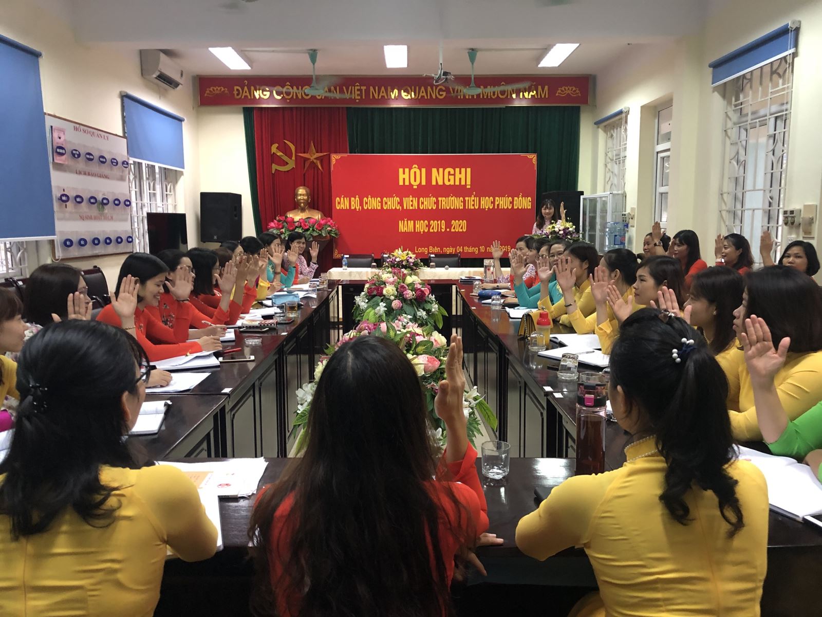 Thực hiện Hướng dẫn số 06/HD-LĐLĐ ngày 26/8/2019 của Liên đoàn Lao động quận Long Biên, sáng ngày 04 tháng 10 năm 2019, Trường TH Phúc Đồng đã long trọng tổ chức Hội nghị công chức, viên chức năm học 2019-2020 nhằm phát huy quyền dân chủ của công chức, viên chức cũng như đánh giá, tổng kết quả thực hiện Nghị quyết năm học 2018-2019 và đề ra phương hướng nhiệm vụ cho năm học 2019-2020.