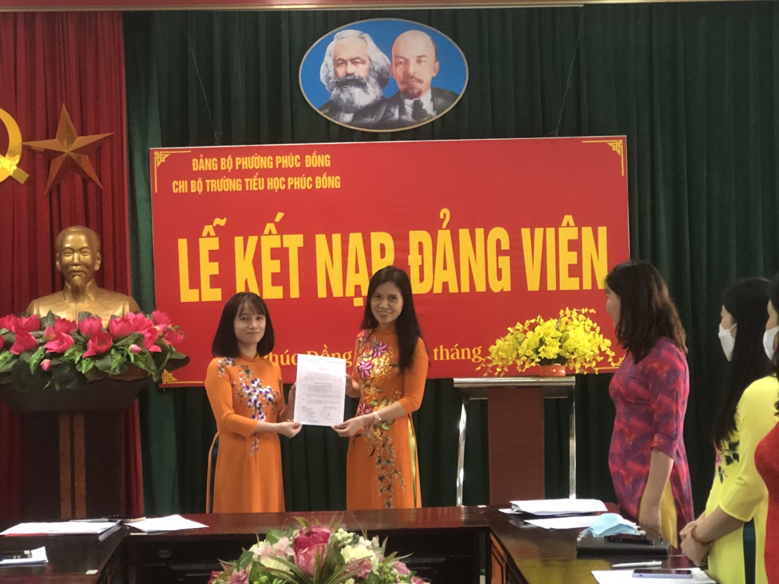 Căn cứ Điều lệ Đảng Cộng sản Việt Nam và Quy định số 45-QĐ/TW thi hành Điều lệ Đảng quy định chi tiết một số điều, khoản trong Điều lệ Đảng. Được sự đồng ý của Đảng uỷ phường Phúc Đồng, Chi bộ Trường Tiểu học Phúc Đồng tổ chức Lễ kết nạp đảng viên cho quần chúng Hoàng Diệu Thu Hằng - Giáo viên trường Trường Tiểu học Phúc Đồng vào Đảng Cộng sản Việt Nam.
