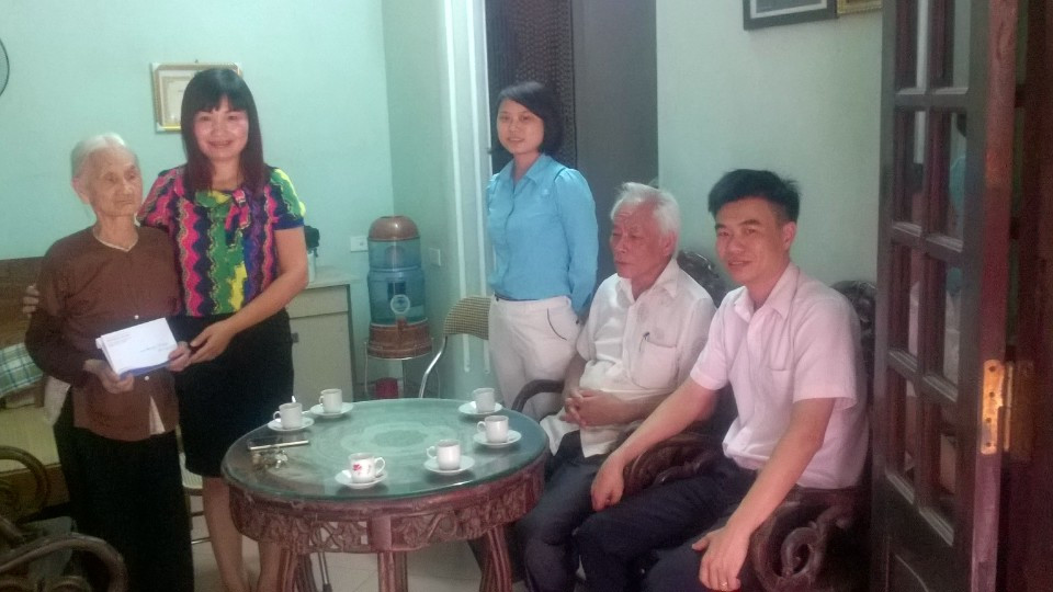 Nhân dịp kỷ niệm 25 năm ngày Quốc tế Người cao tuổi, đại diện Ban giám hiệu cùng đại diện hội chữ thập đỏ trường Tiểu học Phúc Đồng đã đến thăm hỏi, tặng quà cụ Vũ Thị Dần, 102 tuổi ở tại tổ 4 phường Phúc Đồng.