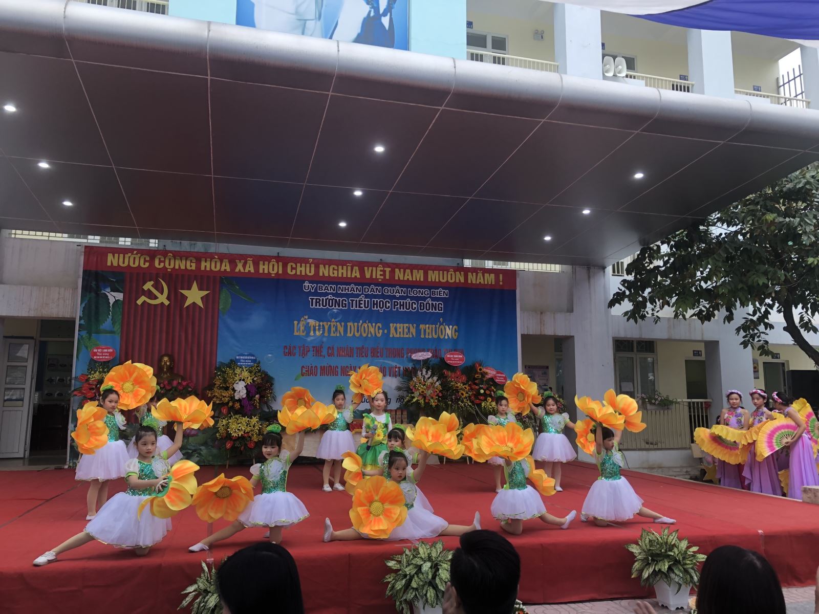 Sau chương trình văn nghệ chào mừng đầy ý nghĩa, cô giáo Đinh Thị Thoa, Bí thư chi bộ, Hiệu trưởng nhà trường đã phát biểu ôn lại truyền thống tôn sư trọng đạo tốt đẹp của dân tộc. Nhân dịp này, lãnh đạo Đảng ủy, UBND phường đã chúc mừng nhà trường với lẵng hoa tươi thắm. Bên cạnh đó, đại diện ban cha mẹ học sinh nhà trường đã gửi tặng các thầy cô giáo lẵng hoa cùng lời chúc tốt đẹp nhất thể hiện tình cảm chân thành và lòng biết ơn sâu sắc của cac bậc phụ huynh và các con học sinh.