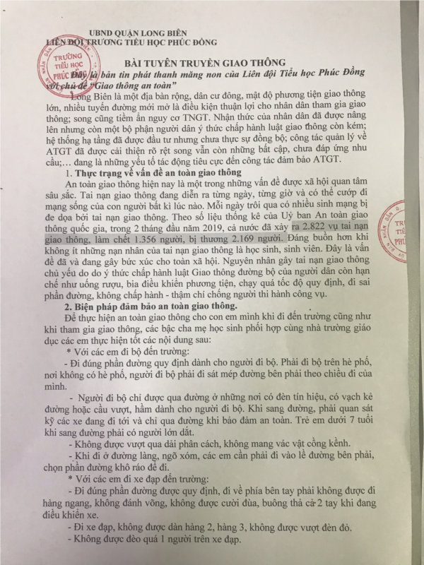 Chúc các bậc phụ huynh và các em học sinh luôn an toàn khi tham gia giao thông và là những tuyên truyền viên tích cực góp phần để “Văn hóa giao thông” đến với mọi người, mọi nhà.