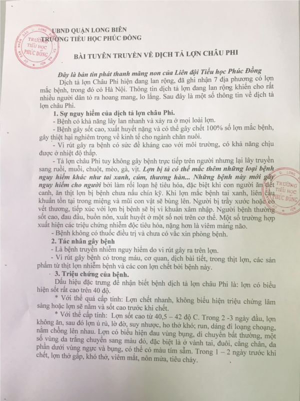 TUYÊN TRUYỀN VỀ DỊCH TẢ LỢN CHÂU PHI