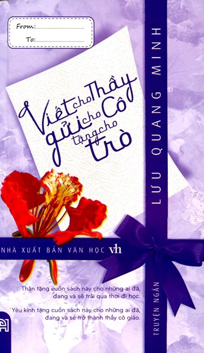 Ngày nhà giáo Việt Nam (hay ngày lễ Hiến chương nhà giáo Việt Nam) là một ngày kỷ niệm được tổ chức hằng năm vào ngày 20/11. Đây là ngày lễ hội của ngành giáo dục và là ngày “tôn sư trọng đạo” nhằm mục đích tôn vinh những người hoạt động trong ngành này. Ngày này là dịp để các thế hệ học trò bày tỏ lòng biết ơn với những người thầy. Hôm nay Thư viện trường Tiểu học Phúc Đồng xin giới thiệu tới thầy cô cùng các con cuốn sách: Viết cho Thầy gửi cho Cô tặng cho Trò. Cuốn sách do Nhà xuất bản Văn học phát hành. Bìa của cuốn sách được phủ một màu tím yêu thương cùng nhành hoa phượng đỏ thắm hình ảnh rất đỗi quen thuộc với chúng ta.